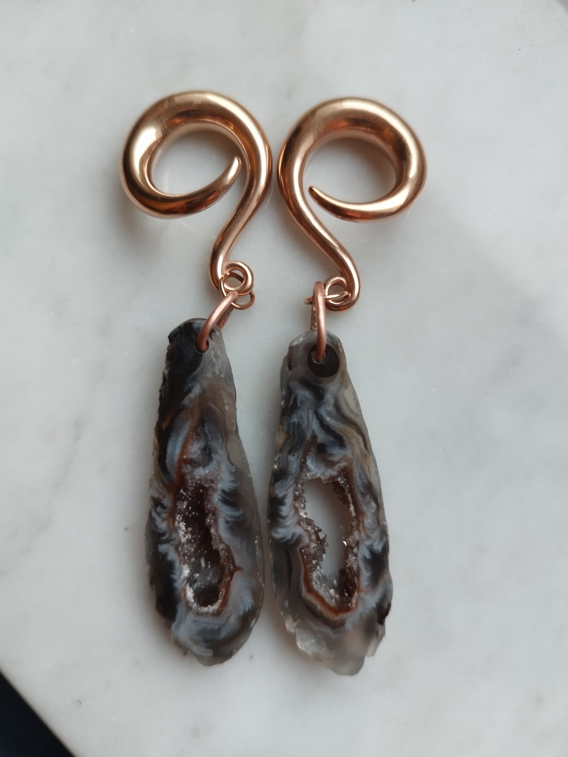 Agate geode slices on 2g rose gold colored hooks