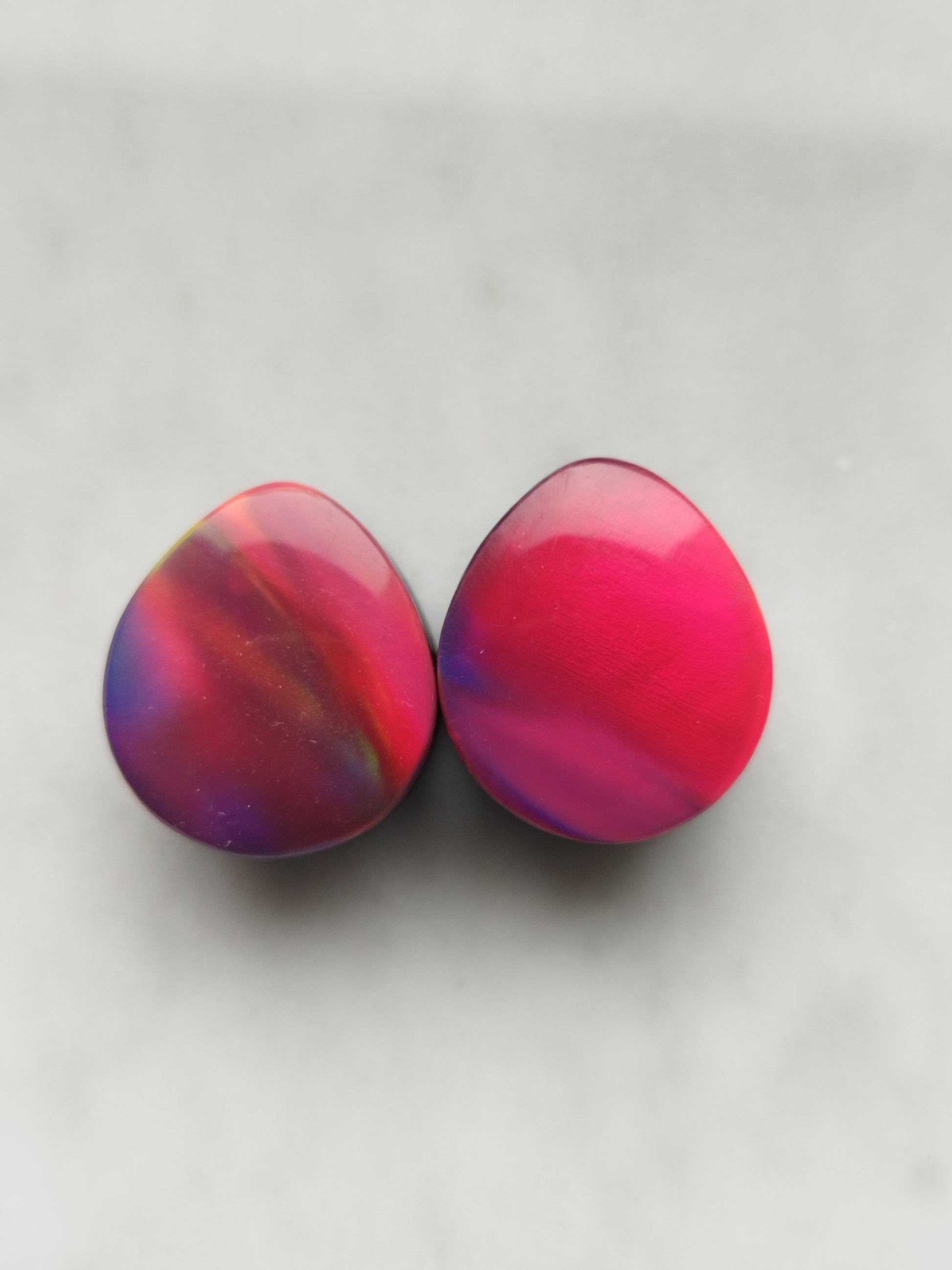 Obsidian plugs with hot pink aurora opal overlays. *please note that aurora opal is man made and not natural opal